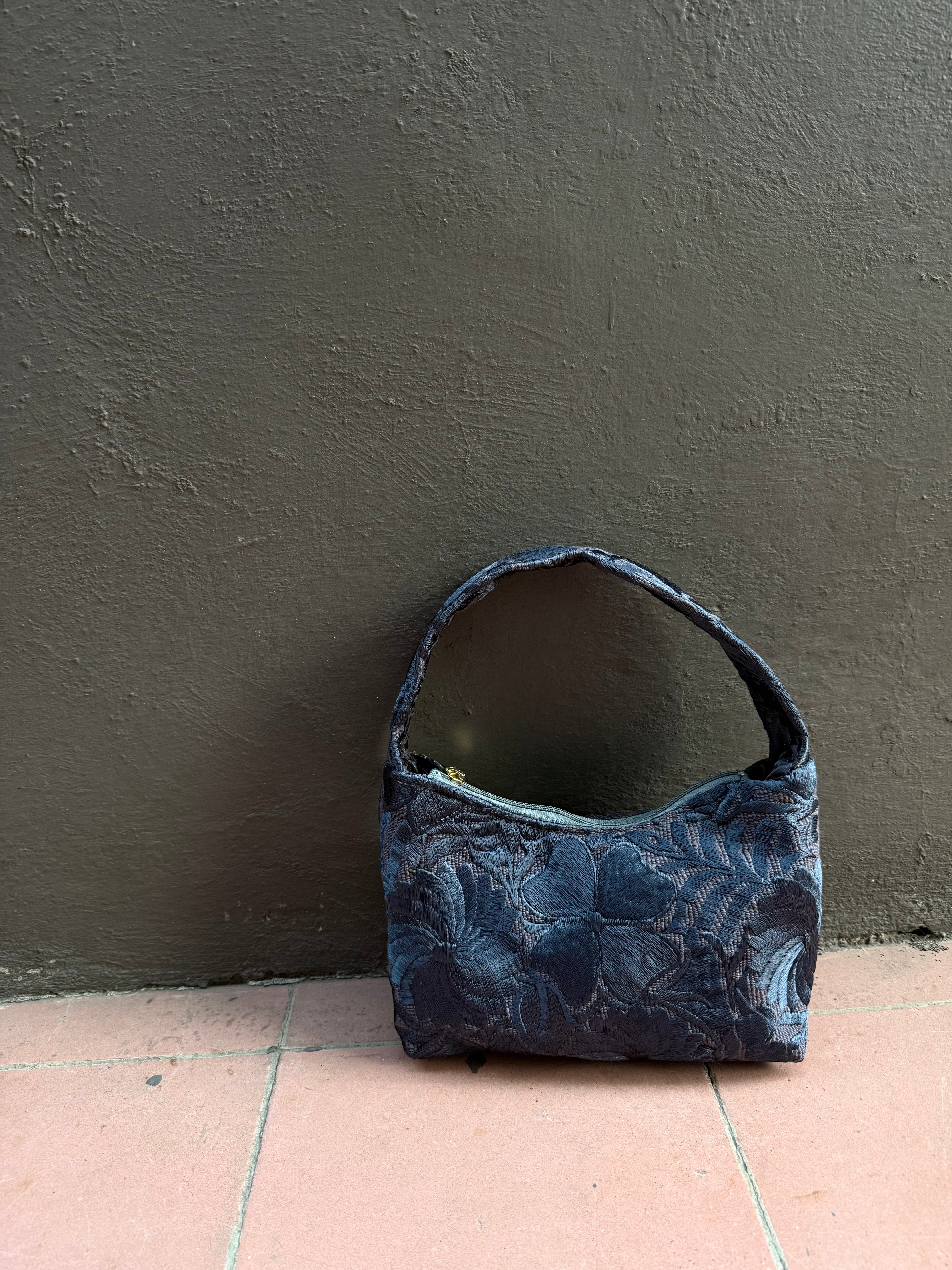 Azul Plata, slate blue grey embroidery on grey canvas.