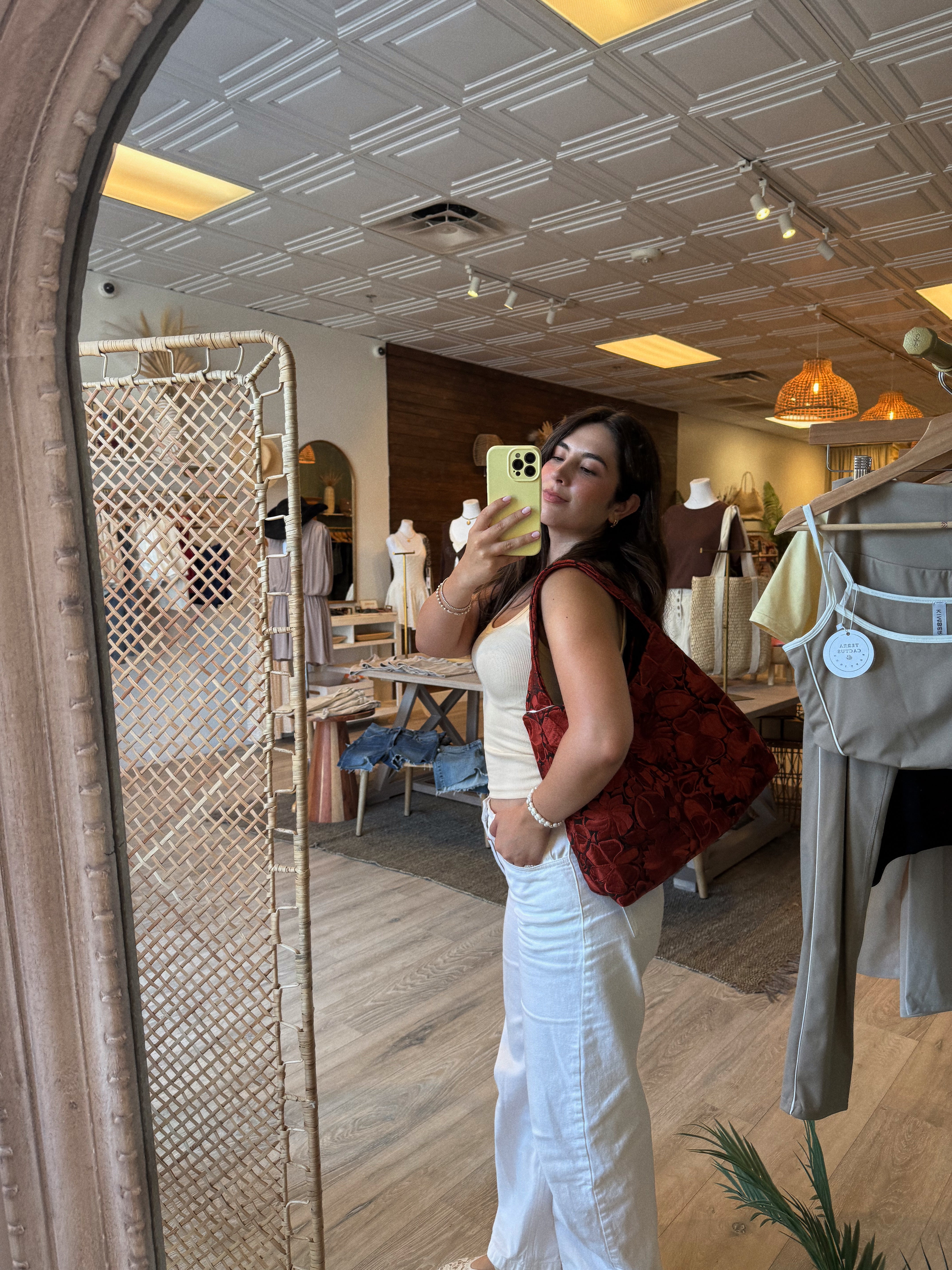 Barro Oscuro, burnt red embroidery on brown canvas.